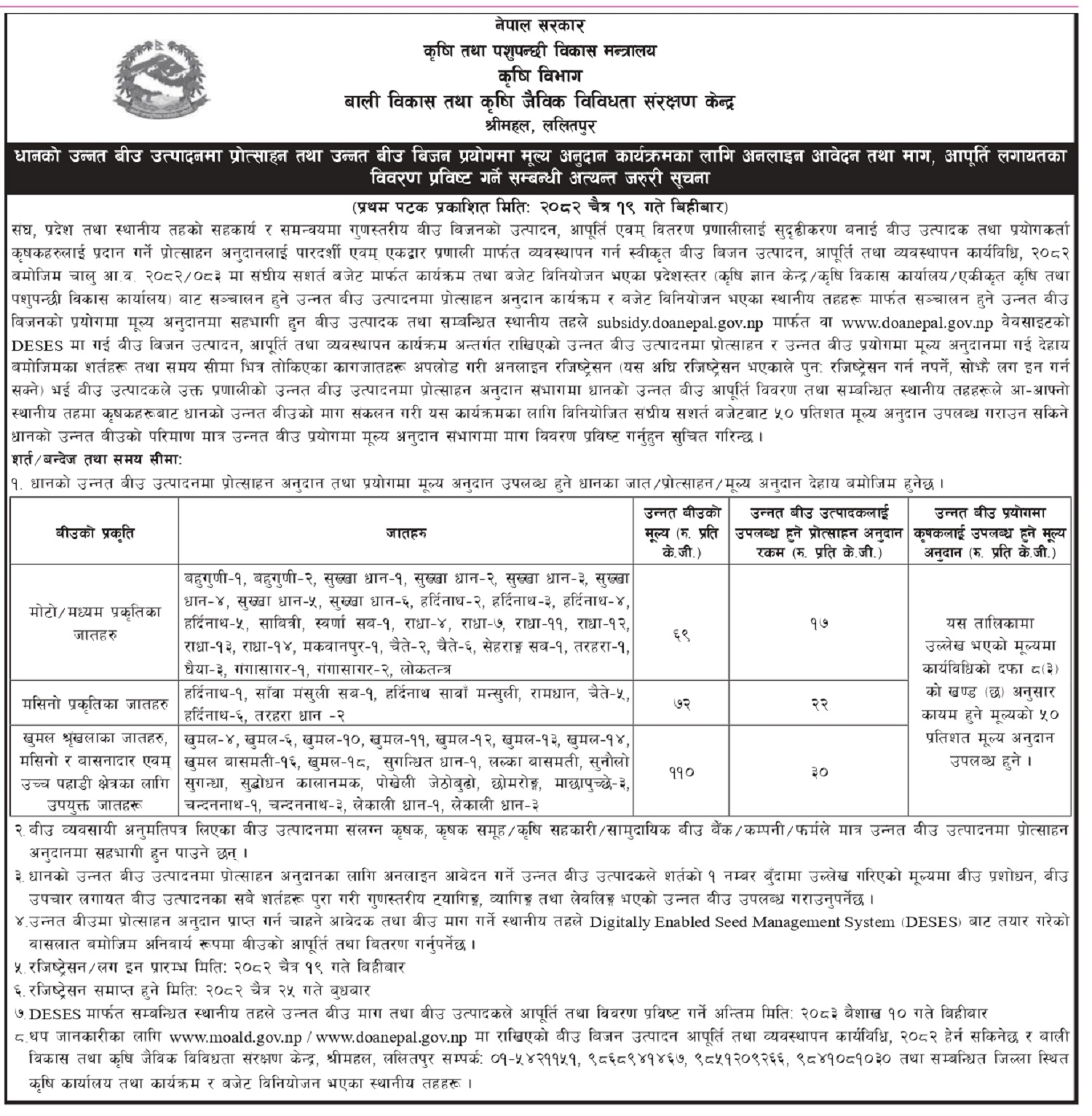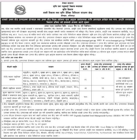उन्नत धान बालीको बीउ माग पेश गर्ने सम्बन्धी सूचना ।