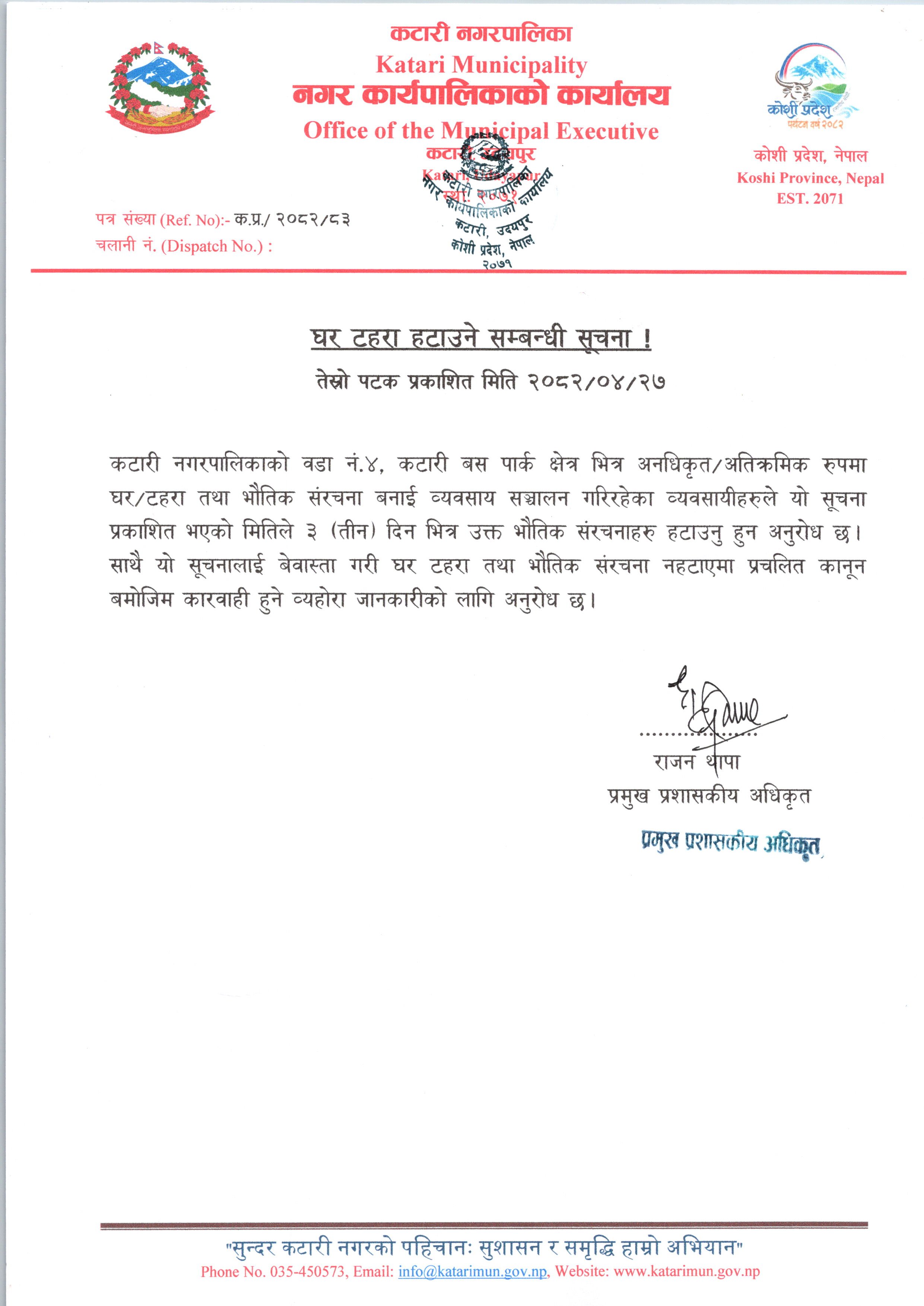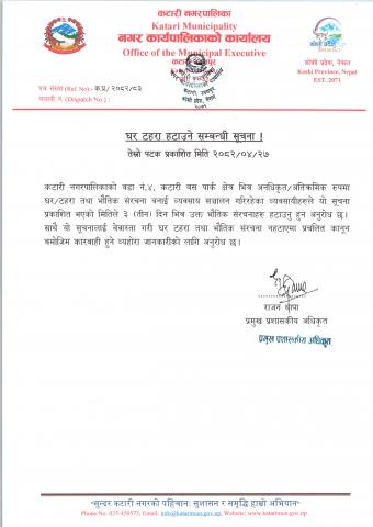घर टहरा हटाउने सम्बन्धी सूचना l