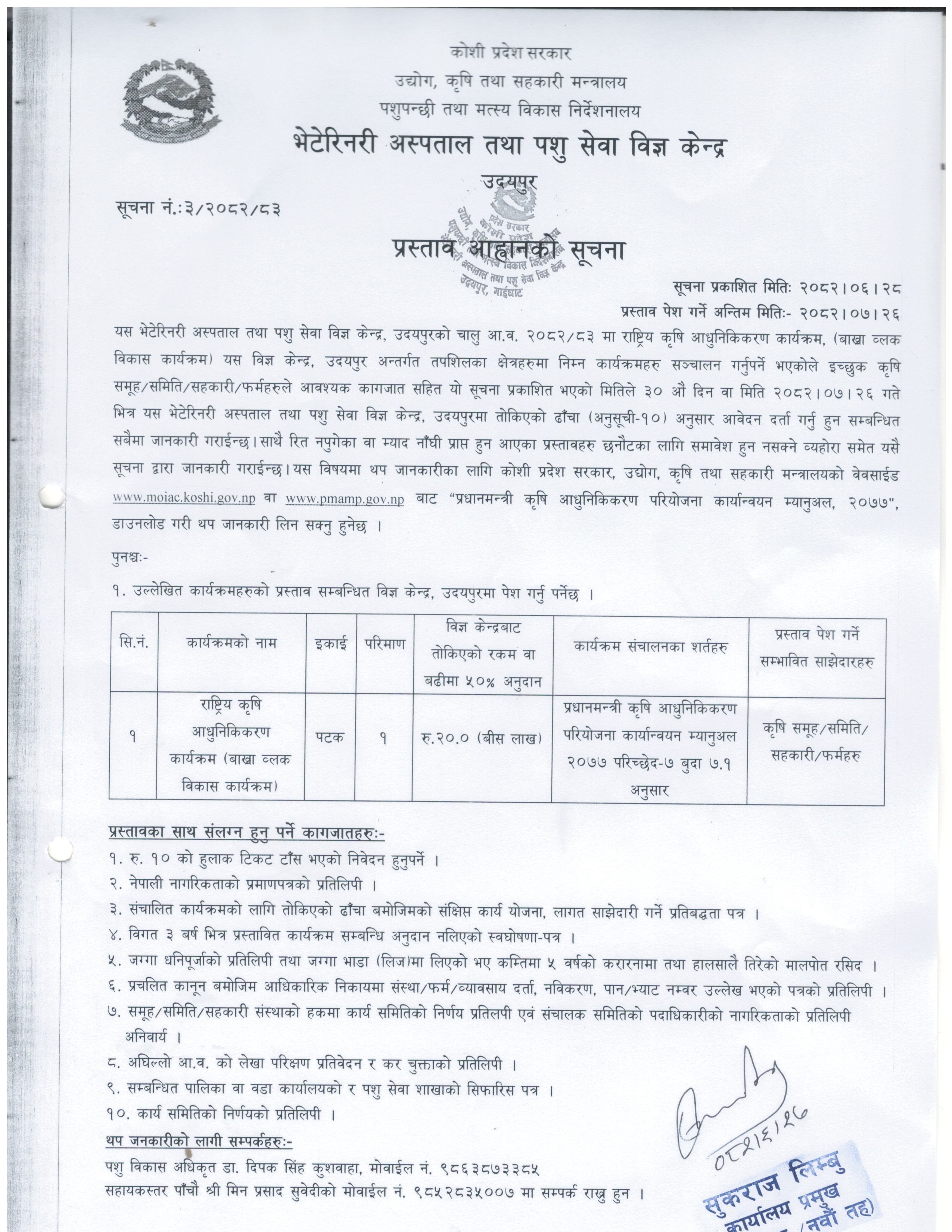 » भेटेरिनरी अस्पताल तथा पशु सेवा विज्ञ केन्द्र, उदयपुरको प्रस्ताव आवहान सम्बन्धी सूचना l