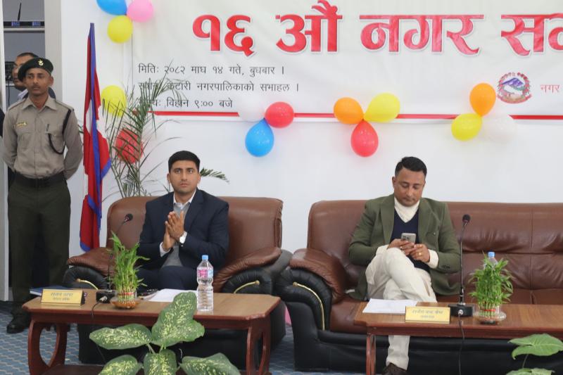 » नगरसभा हलमा आयोजित कटारी नगरपालिकाको १६औँ नगरसभा कार्यक्रमको दृश्य।