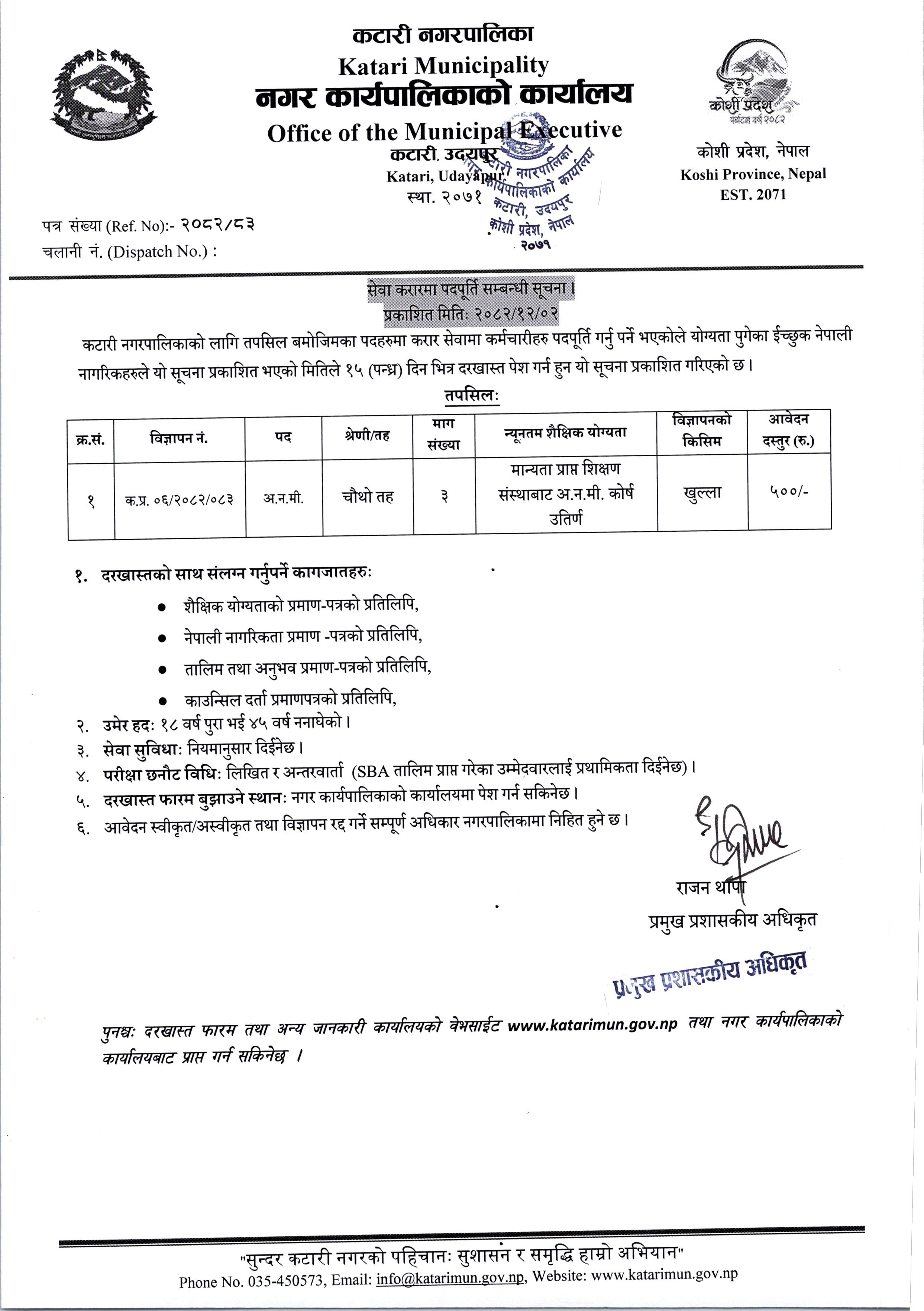 कटारी नगरपालिका - दर रेट २०७६/०७७