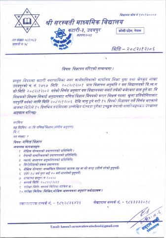 » श्री सरस्वती माध्यमिक विद्यालय, कटारी-३ को लागि गणित शिक्षक आवश्यकता सम्बन्धी सूचना l