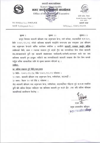 अनमी (ANM) पदका लागि कर्मचारी आवश्यकता सम्बन्धी सूचना ।
