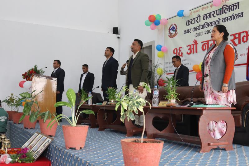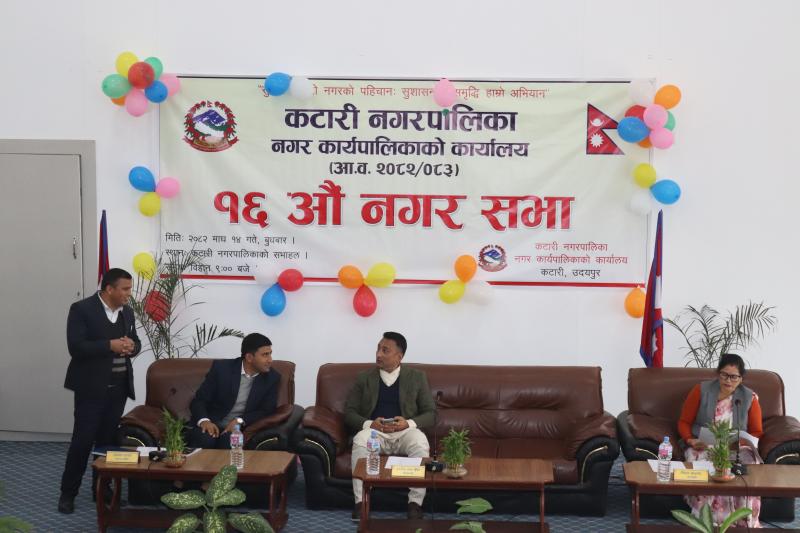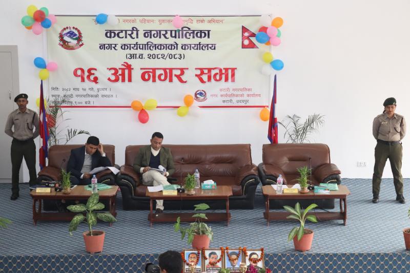 » नगरसभा हलमा आयोजित कटारी नगरपालिकाको १६औँ नगरसभा कार्यक्रमको दृश्य।